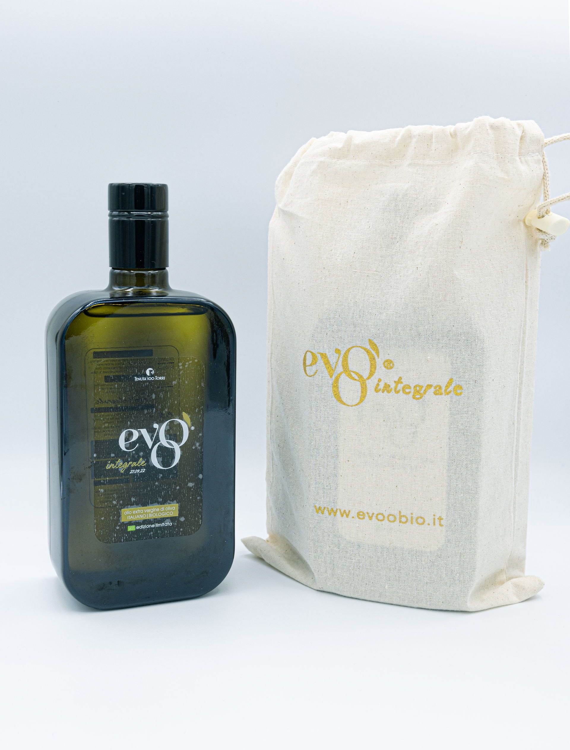 Evoo Integrale è il primo Olio Extravergine che inaugura l'inizio della Campagna Olearia di ogni anno. E' una meravigliosa festa a sorpresa di fine estate che si ripete dal 2021 e che coinvolge tutti. Erbaceo e primitivo, è la sintesi di un mix di olive appena invaiate che confluisce in un'ovazione di sentori e profumi intensi e persistenti, una vera spremitura di benessere, ricchissimo di polifenoli e sostanze benefiche al cuore e allo spirito. E' proposto in edizione limitata e disponibile solo su prenotazione.