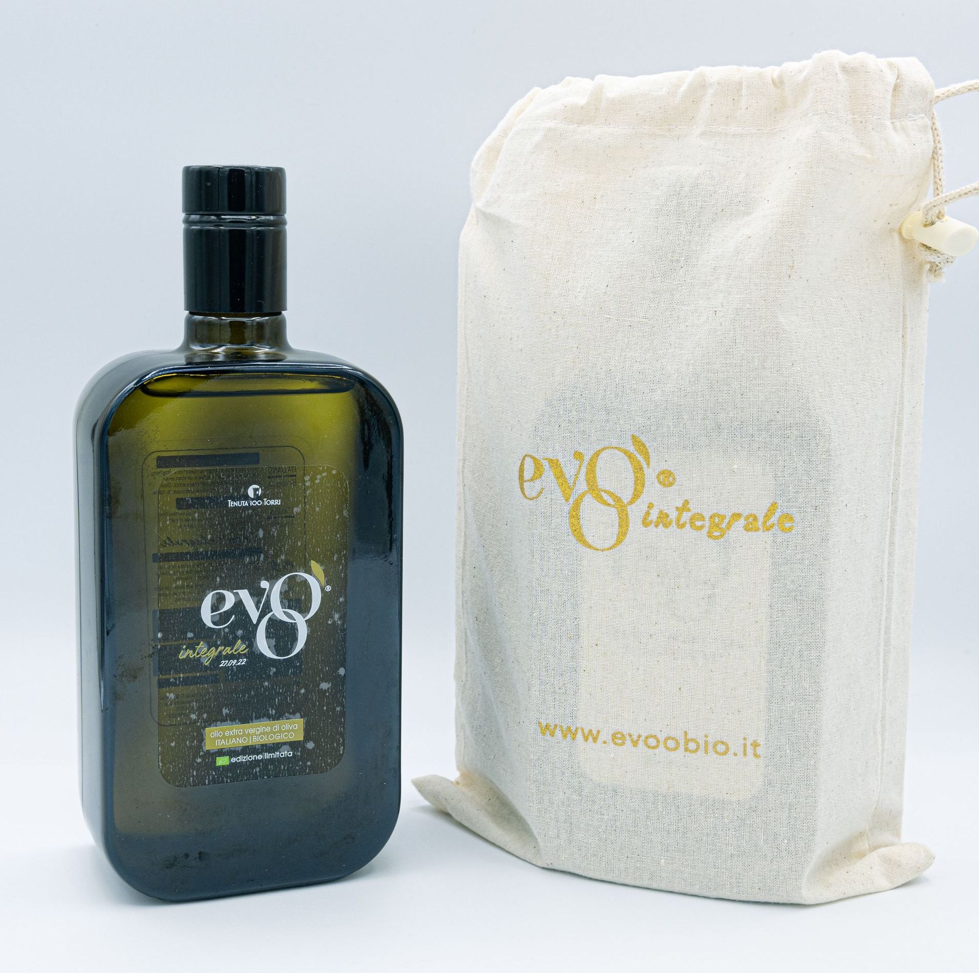 Evoo Integrale è il primo Olio Extravergine che inaugura l'inizio della Campagna Olearia di ogni anno. E' una meravigliosa festa a sorpresa di fine estate che si ripete dal 2021 e che coinvolge tutti. Erbaceo e primitivo, è la sintesi di un mix di olive appena invaiate che confluisce in un'ovazione di sentori e profumi intensi e persistenti, una vera spremitura di benessere, ricchissimo di polifenoli e sostanze benefiche al cuore e allo spirito. E' proposto in edizione limitata e disponibile solo su prenotazione.